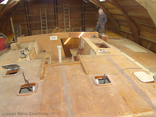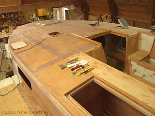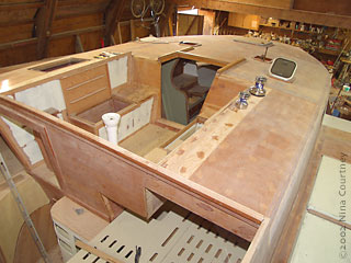 The decks are amost ready for priming. I have yet to finish the coaming around the cockpit and the bow deck. That's next...